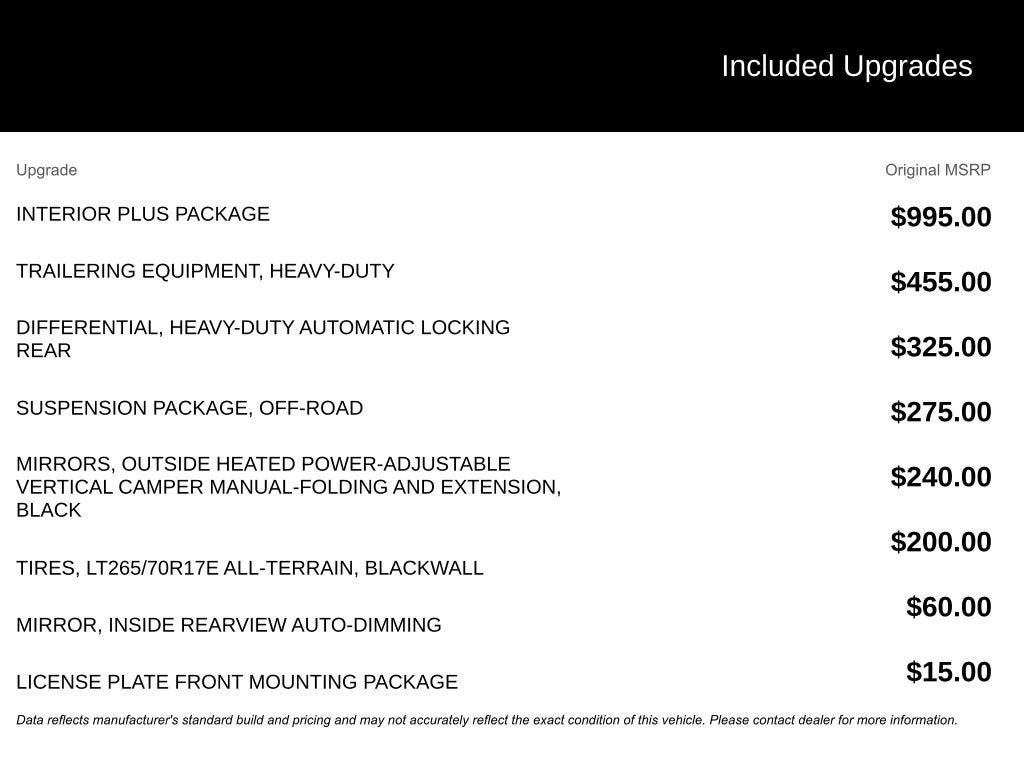 The Manufacturer's Suggested Retail Price excludes tax, title, license, dealer fees and optional equipment. Dealer sets final price.