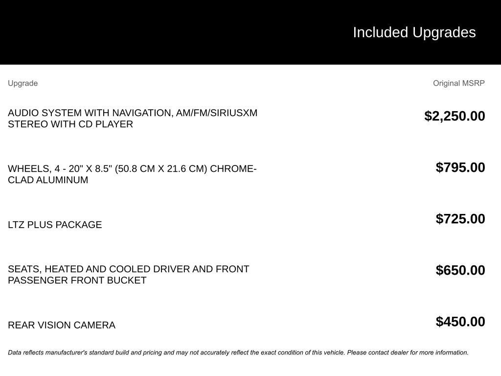This vehicle has been through a multi-point inspection by an ASE Certified technician. All identified issues deemed necessary were fixed. Fully detailed and ready for immediate delivery. Our Chevrolet Finance Center works with all credit types from good to bad. Get Pre-Approved for an auto loan now by clicking the Pre-Qualify link at the bottom of the page.