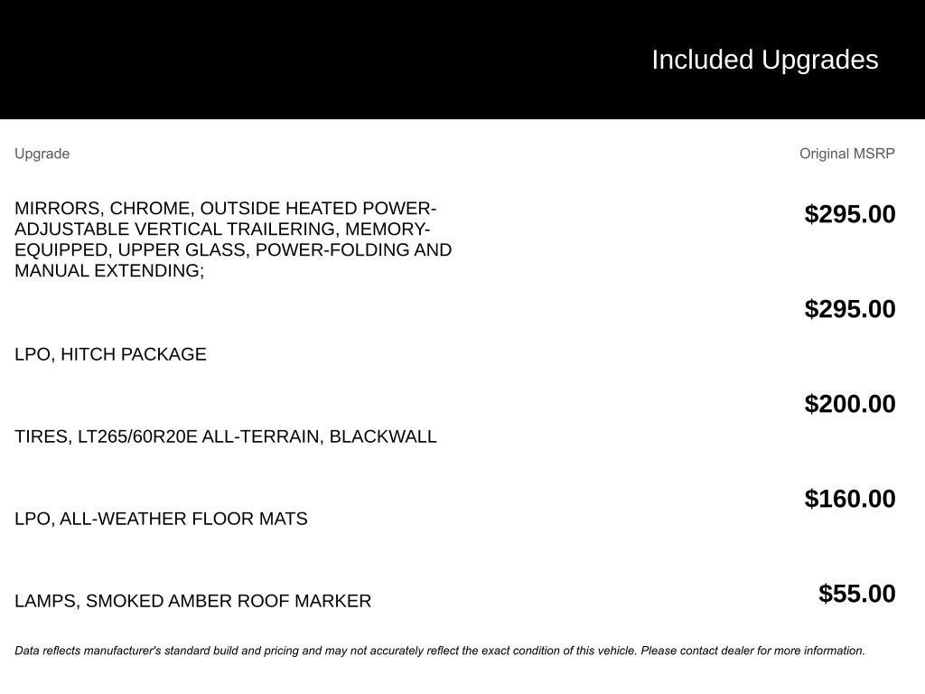 The Manufacturer's Suggested Retail Price excludes tax, title, license, dealer fees and optional equipment. Dealer sets final price.