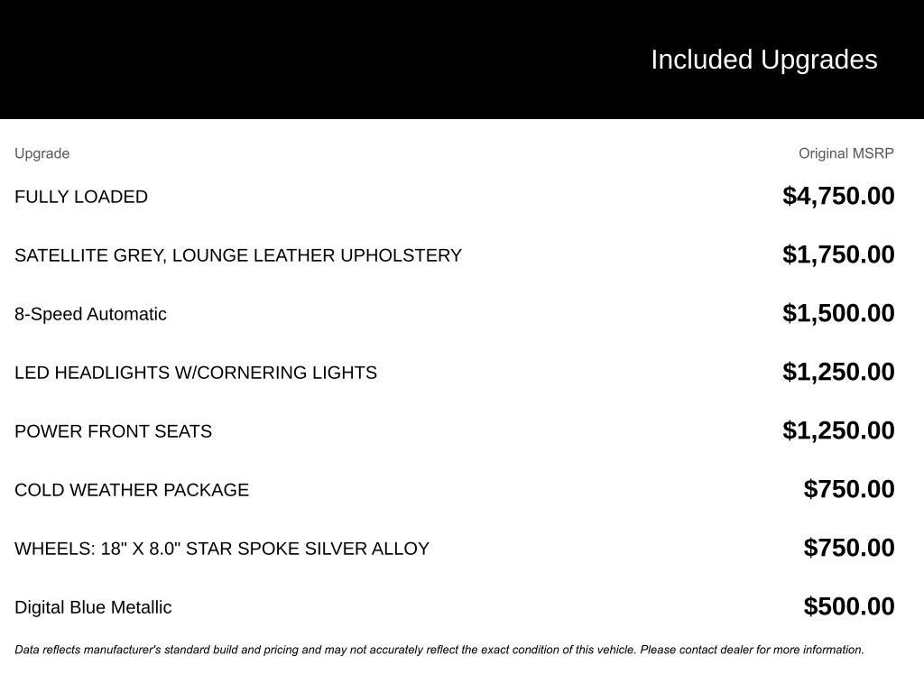 The Manufacturer's Suggested Retail Price excludes tax, title, license, dealer fees and optional equipment. Dealer sets final price.