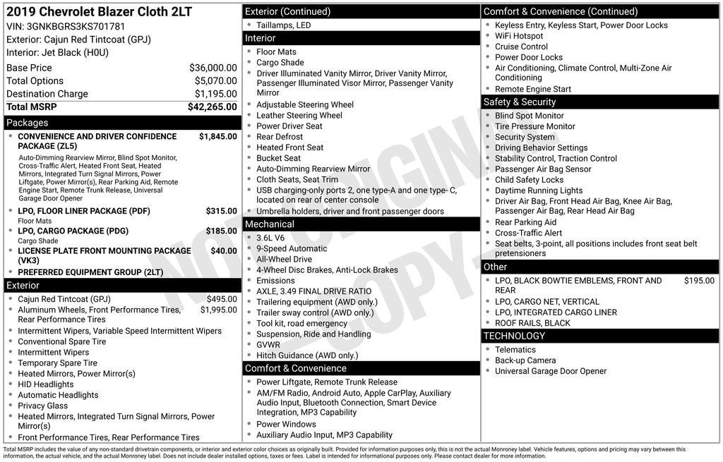 2019 Chevrolet Blazer Cajun Red Tintcoat 3.6L V6 SIDI DOHC VVT AWD