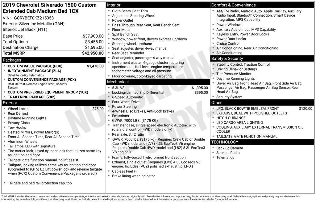 2019 Chevrolet Silverado 1500 Custom Silver Ice Metallic EcoTec3 5.3L V8 4WD