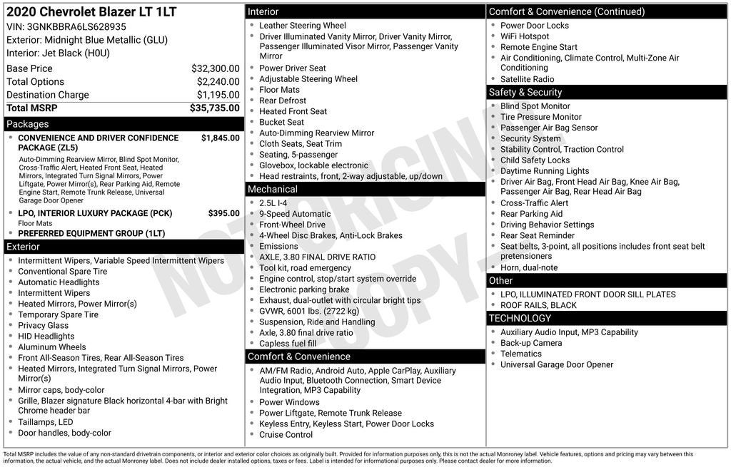 2020 Chevrolet Blazer LT Midnight Blue Metallic 2.5L 4-Cylinder FWD