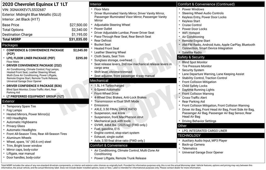 2020 Chevrolet Equinox LT Midnight Blue Metallic 1.5L DOHC FWD
