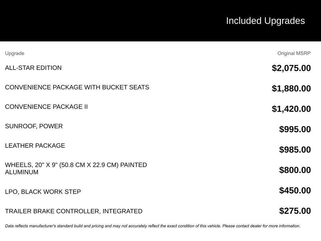 The Manufacturer's Suggested Retail Price excludes tax, title, license, dealer fees and optional equipment. Dealer sets final price.