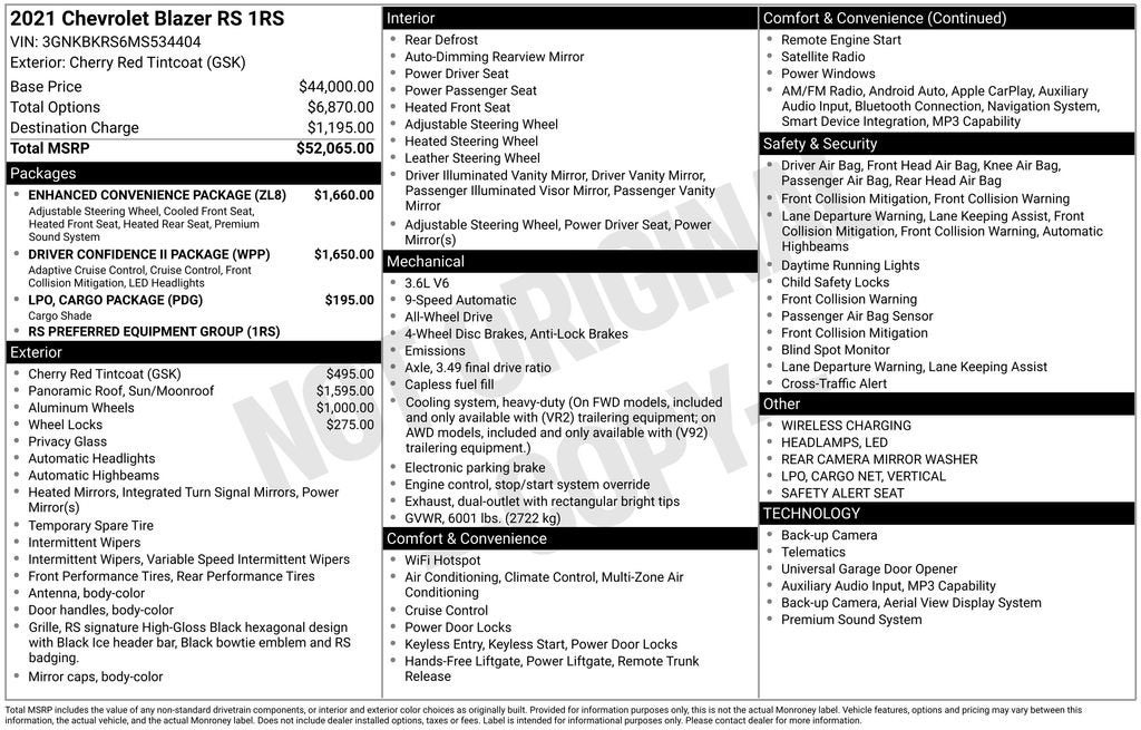 2021 Chevrolet Blazer RS Cherry Red Tintcoat 3.6L V6 SIDI DOHC VVT AWD