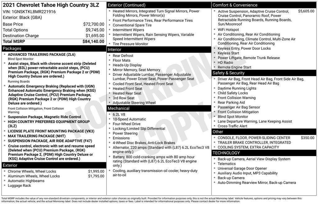 2021 Chevrolet Tahoe High Country Black EcoTec3 6.2L V8 4WD