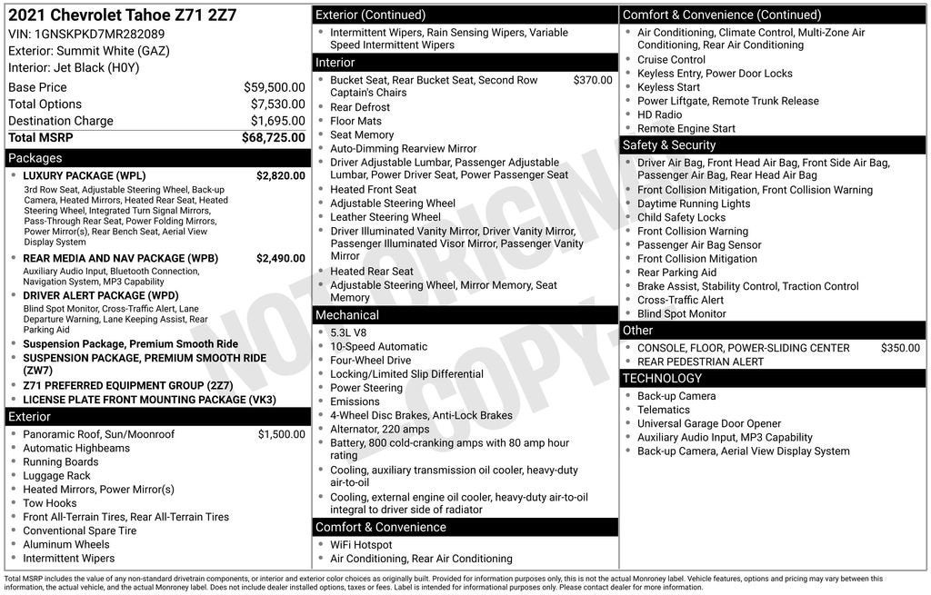 2021 Chevrolet Tahoe Z71 Summit White EcoTec3 5.3L V8 4WD