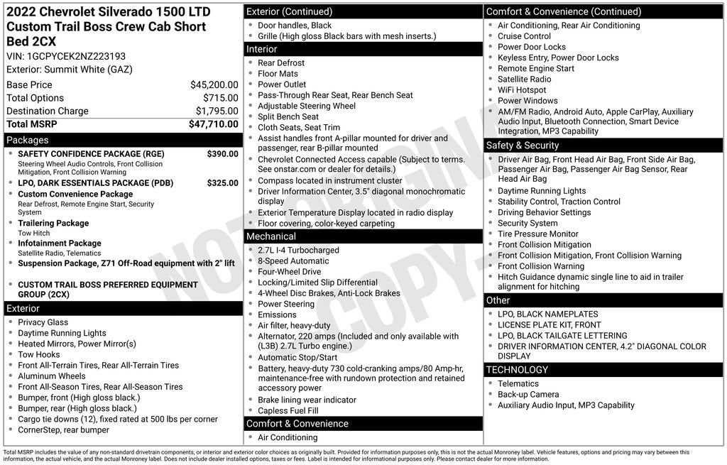 - Custom Trail Boss Preferred Equipment Group includes standard equipment