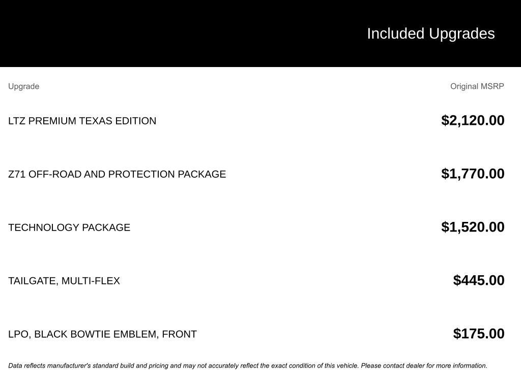 - LTZ models include 20" all-terrain blackwall tires and Chevytec spray-on bedliner