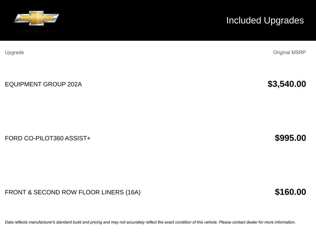 This vehicle has been through a multi-point inspection by an ASE Certified technician. All identified issues deemed necessary were fixed. Fully detailed and ready for immediate delivery. Our Chevrolet Finance Center works with all credit types from good to bad. Get Pre-Approved for an auto loan now by clicking the Pre-Qualify link at the bottom of the page.