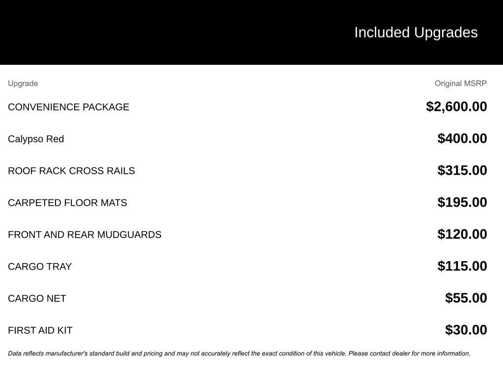 The Manufacturer's Suggested Retail Price excludes tax, title, license, dealer fees and optional equipment. Dealer sets final price.