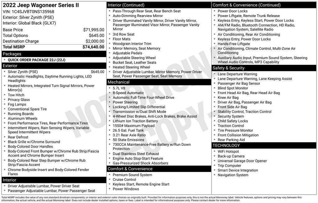 Whether you're embarking on a family adventure or seeking a refined daily driver, this 2022 Jeep Wagoneer Series II is the perfect choice. With its exceptional capabilities, sophisticated styling, and impressive list of features, it's a vehicle that will elevate your driving experience to new heights.