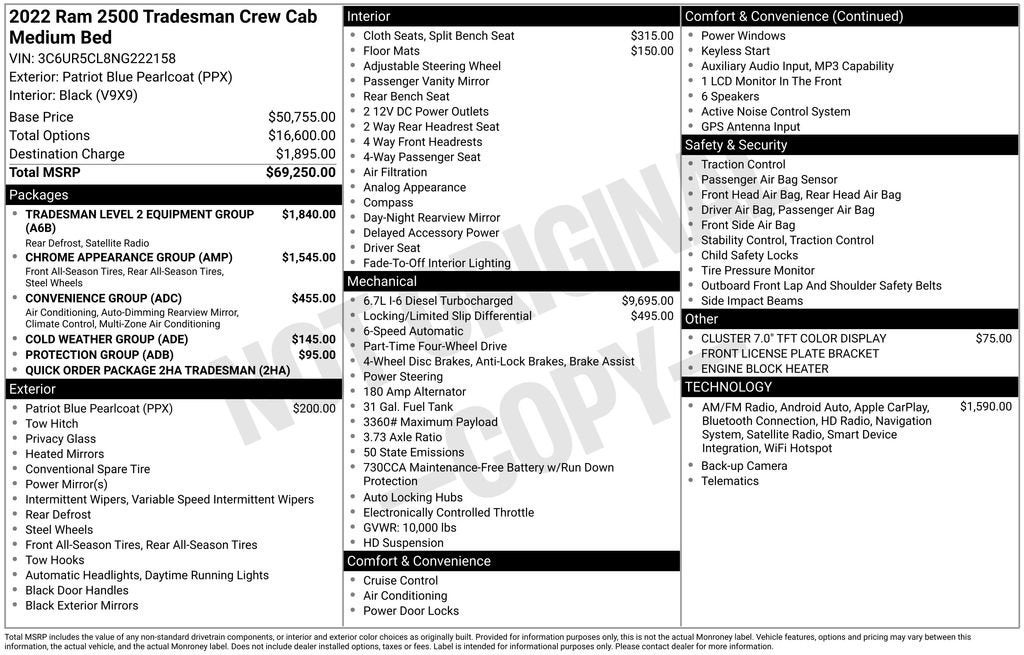2022 Ram 2500 Tradesman Patriot Blue Pearlcoat Cummins 6.7L I6 Turbodiesel 4WD