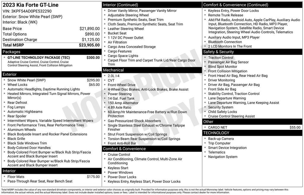 2023 Kia Forte GT-Line Snow White Pearl 2.0L I4 MPI FWD