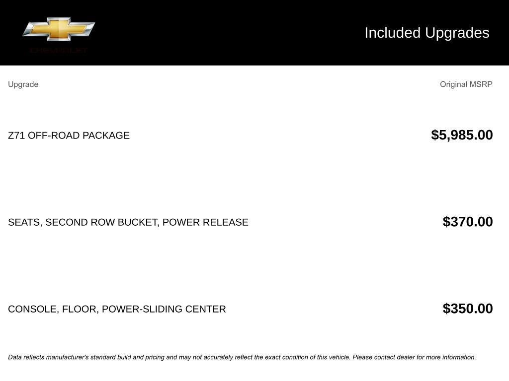 This vehicle has been through a multi-point inspection by an ASE Certified technician. All identified issues deemed necessary were fixed. Fully detailed and ready for immediate delivery. Our Chevrolet Finance Center works with all credit types from good to bad. Get Pre-Approved for an auto loan now by clicking the Pre-Qualify link at the bottom of the page.
