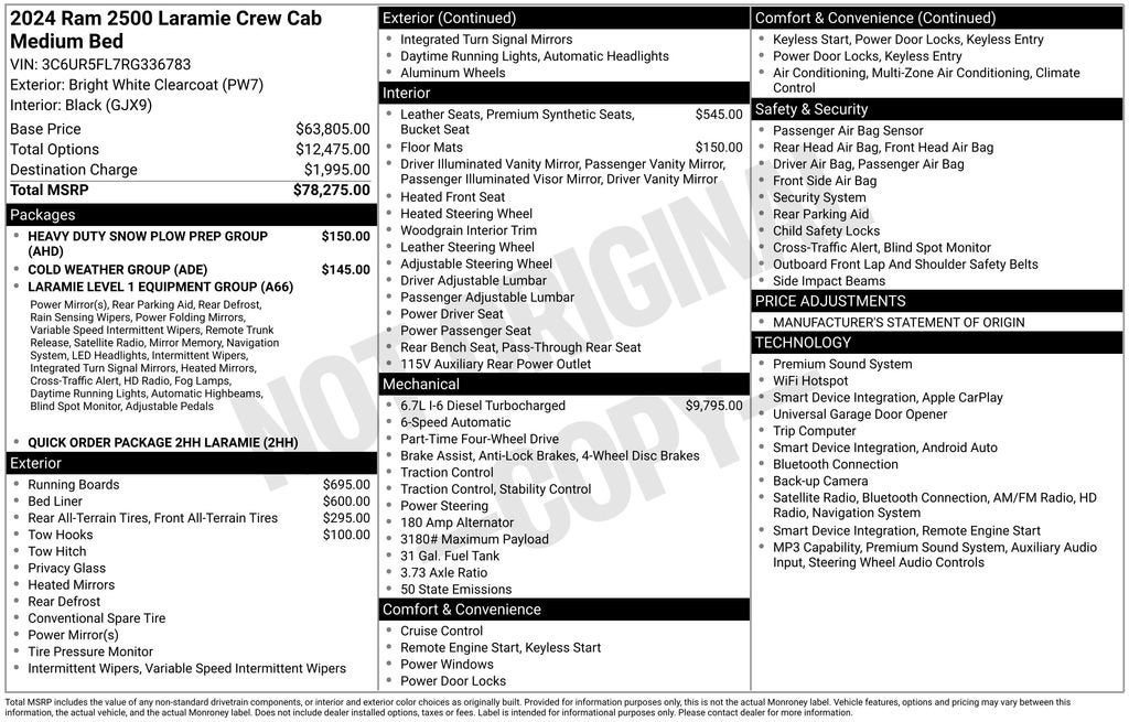 2024 Ram 2500 Laramie Bright White Clearcoat Cummins 6.7L I6 Turbodiesel 4WD
